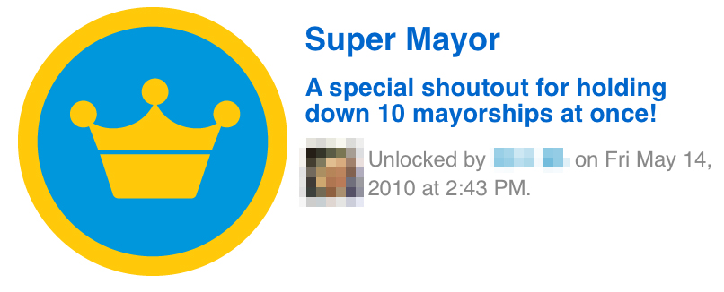上の2つの画像は同じ人のバッジ情報なのですが、上のSuper Mayorはvenueの情報なし。下はちゃんと「高知駅」と出ています。この表示される条件がまだ不明。チェックインが公開か非公開かも関係ないみたいです。